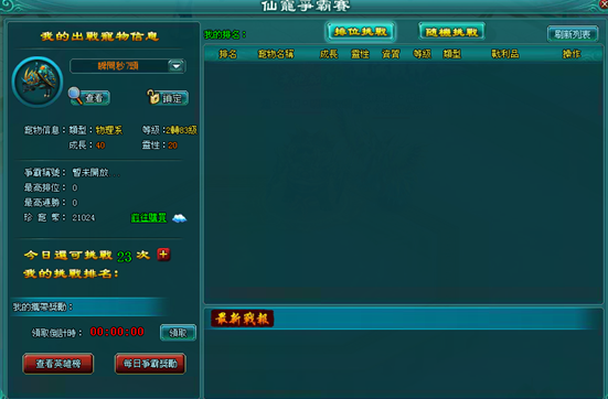 仙寵是仙魔大戰不可少的助力,修真者為了更好的瞭解仙寵,每日都會讓各仙寵進行爭鬥,來瞭解仙寵實力,對其進行排位。