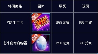 活動內容:回饋廣大修仙道友,開服7天內商城將開放五折紫色資質玄冰窮奇寶寶及黃金VIP搶購!其中黃金VIP在優惠時間過後將恢復原價,而無比珍貴的玄冰窮奇僅能在這7天中通過搶購獲得!機不可失時不再來,你還等什麼呢?趕快搶購吧!