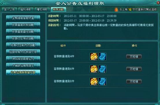 3. 每個角色必須裝備了足夠數量四象仙境套裝才可領取獎勵,每個角色只可領取一次獎勵。