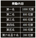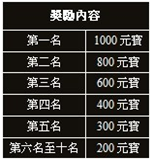 活動內容:在活動時間結束後,戰鬥力排行榜前10的玩家可獲得豐厚獎勵。