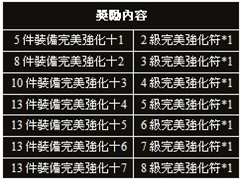 活動內容:強化裝備可以大幅提高裝備的基礎屬性,並且強化等級可以在獲得更好的裝備後進行無損轉移,一次強化終身受益。在活動時間內達到指定強化目標的玩家可以獲得豐厚獎勵。
