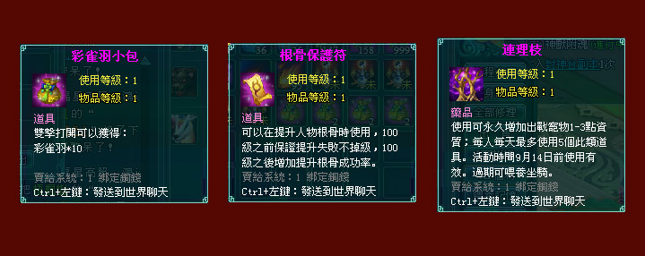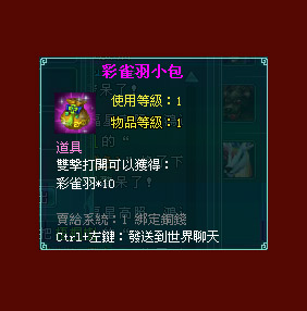 3. 9/5~9/11期間,≥40級的副本有幾率掉落 彩雀羽