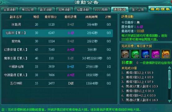 在日常---通關戰績頁面記錄玩家最好戰績。每完成一次目標突破,就有沖關獎勵領取。