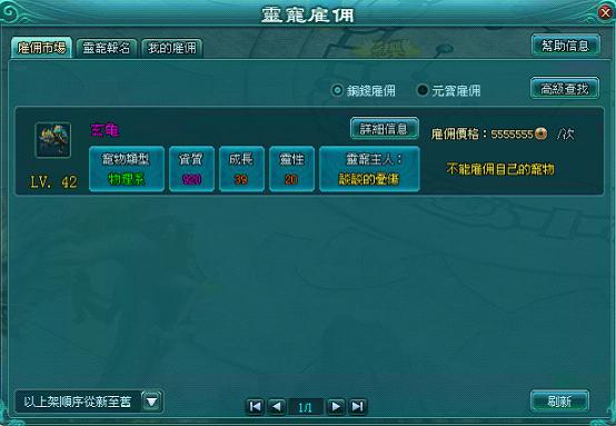 2. 玩家不能雇傭自己上架的寵物;