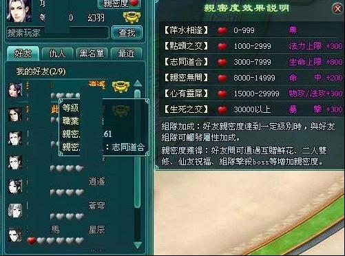 2. 和好友打坐雙修也可獲得每5分鐘1點的親密度。每天由雙修獲得的的親密度最多為288點。